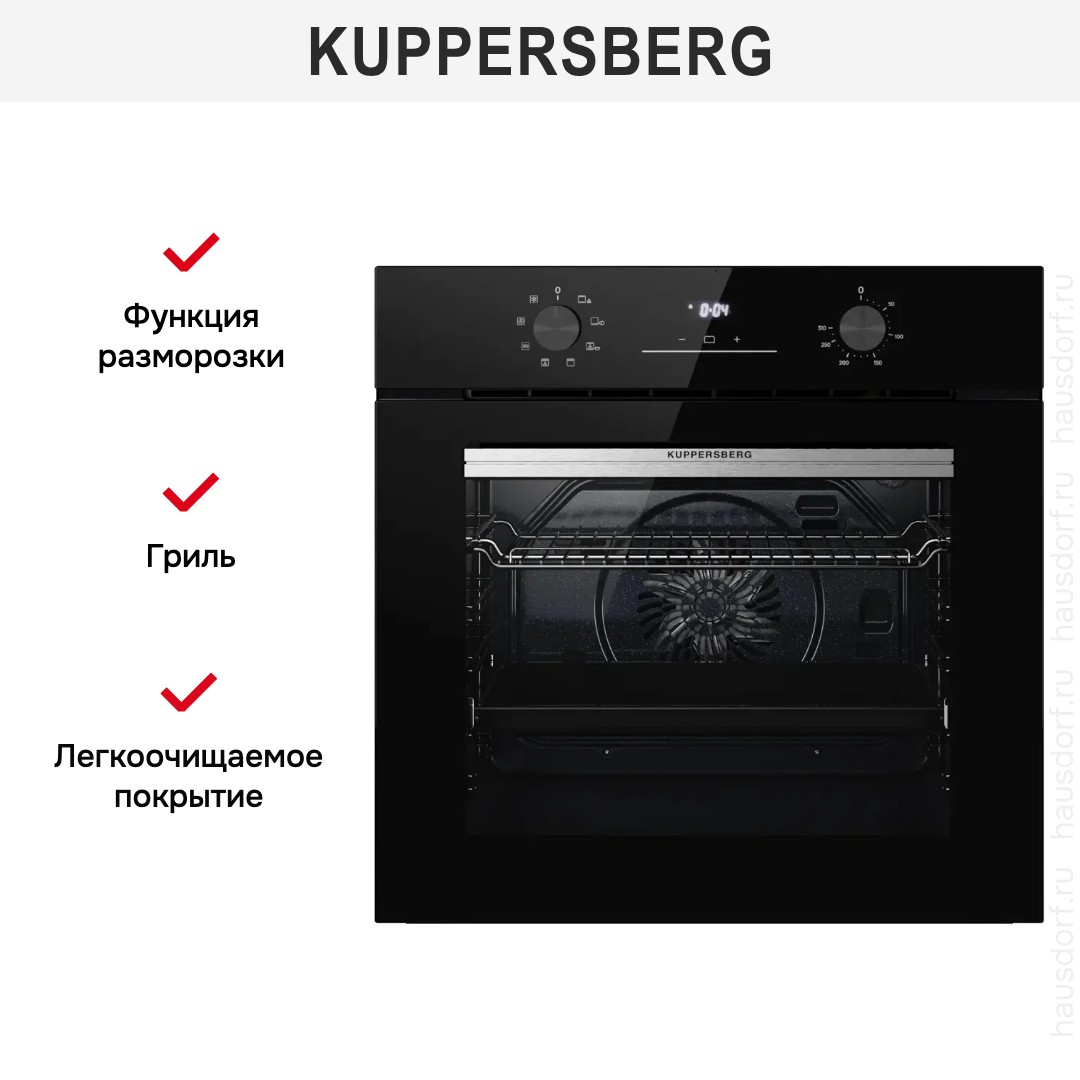Количество режимов работы в духовом шкафу Куперсберг: 8. В число доступных программ входят: классический нагрев, нижний нагрев, гриль для создания хрустящей корочки, и другие. Помимо основных программ воспользуйтесь специальными возможностями этого прибора: размораживанием продуктов, чтобы сократить время на подготовку; и другими. Тип гриля в этой модели — электрический.