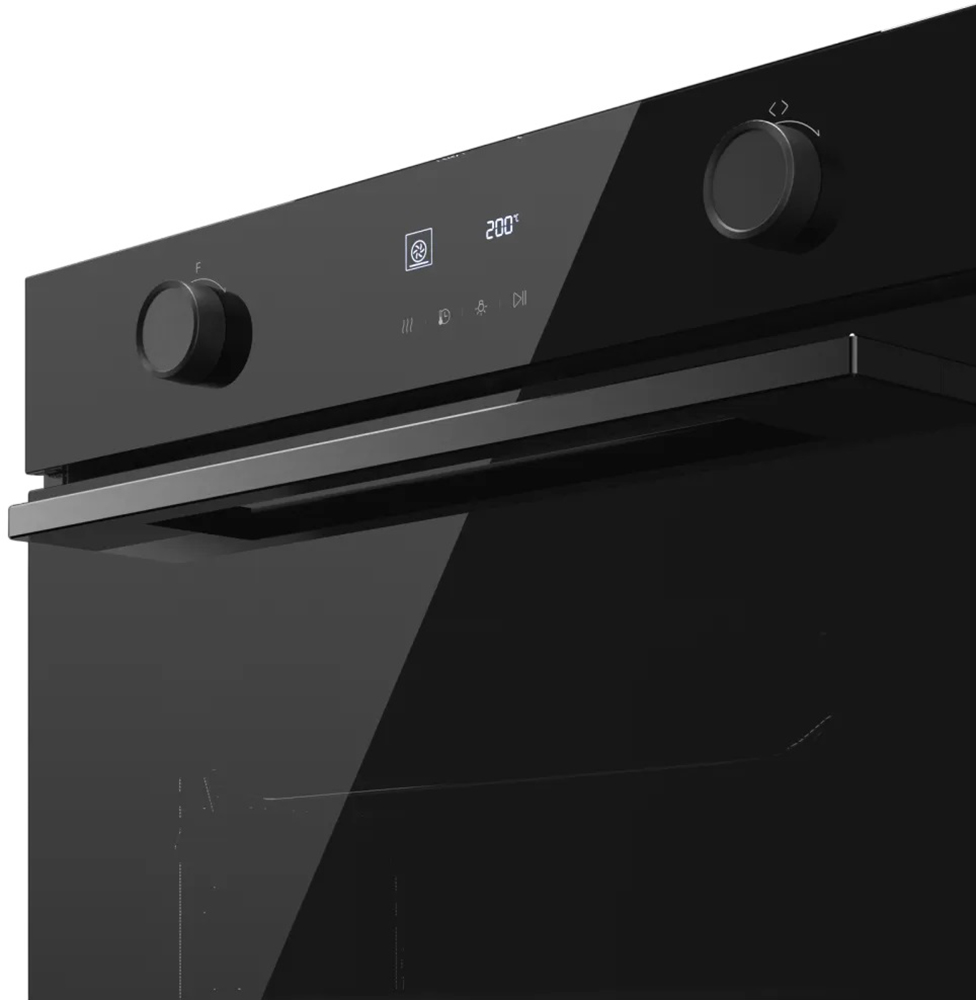 Особенности дизайна и внешней панели управления — также важный пункт при выборе духовки на кухню. В данной модели нужно обратить внимание на цвет — черный,