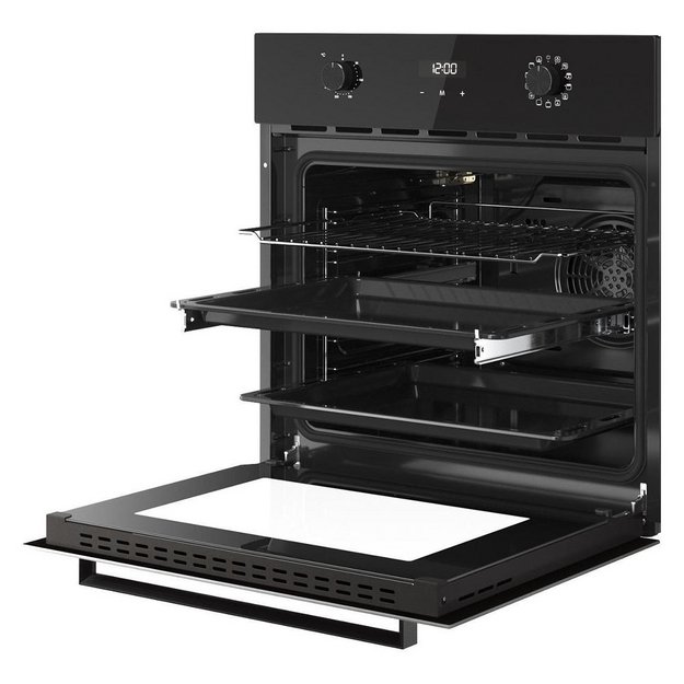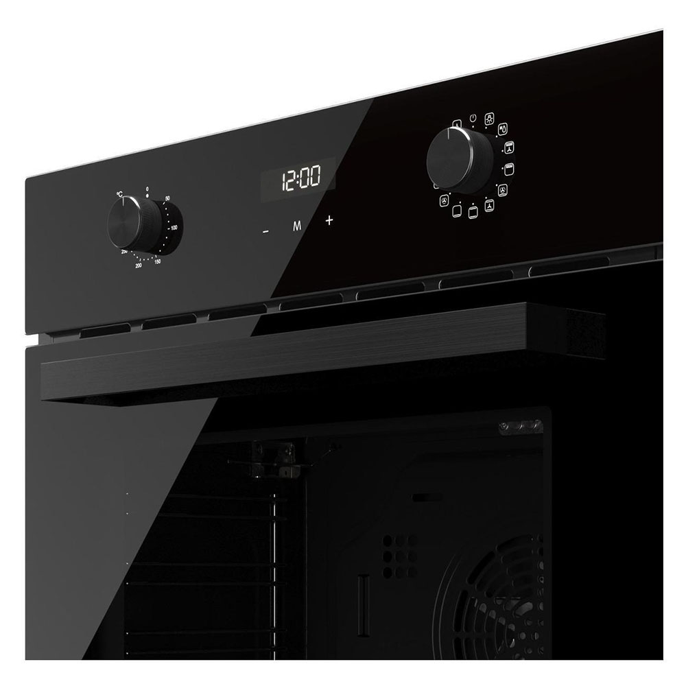 Особенности дизайна и внешней панели управления — также важный пункт при выборе духовки на кухню. В данной модели нужно обратить внимание на цвет — черный,