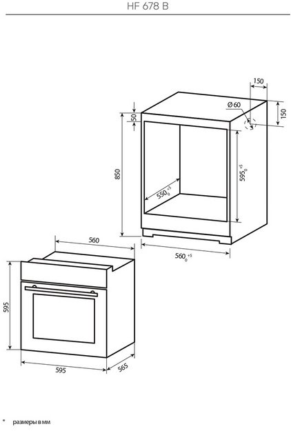 Ко всем моделям прилагаются подробные инструкции по установке, где указаны точные размеры ниши для каждой конкретной духовки.