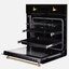 Оригинально и эффектно выглядит фурнитура цвета черненого серебра, которое также называется состаренным. Но особенно привлекательно и стильно смотрится фурнитура духовок в стиле кантри, ампир или классическом: она включает переключатели, декоративные элементы и ручки-рейлинги из латуни, бронзы и различных сплавов золотистого или медного оттенка.