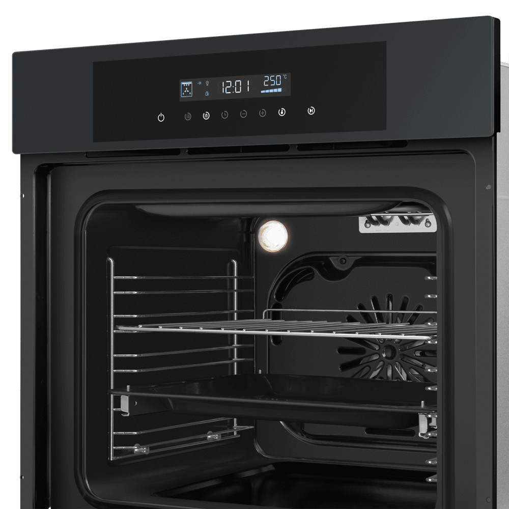 Maunfeld AEOD6063G1 — это независимая духовая камера с фасадом не самого частого графитового оттенка, предназначенная для тех, кто ценит сдержанную элегантность. В ней сочетается матовая фурнитура и приглушённый блеск стекла, каждая деталь выглядит стильно и продуманно: от дверцы с тройным стеклом до аккуратного цифрового дисплея.