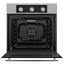 Внутренний объём камеры равен 60 литрам. Противни располагаются на пяти уровнях, в ряде режимов допускается одновременное приготовление двух-трех блюд. Традиционный набор программ охватывает верхний и нижний жар, верхний нагрев для доведения до готовности и электрический гриль высокой мощности 1.1 кВт. Механическое управление при помощи поворотных регуляторов поможет задавать программу, выбирать температуру приготовления в пределах от 50 до 250 градусов. Таймер позволяет не только выбрать длительность готовки со звуковым оповещением, но и отключить нагрев автоматически.