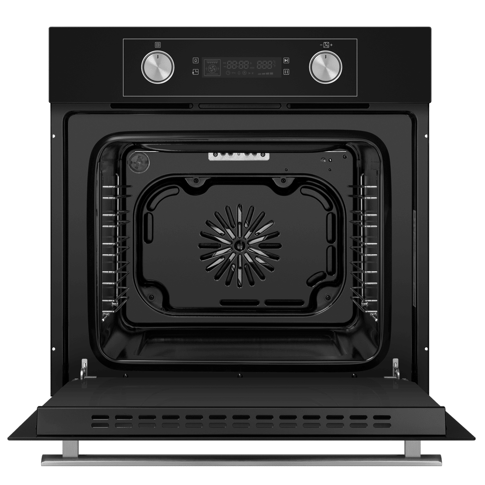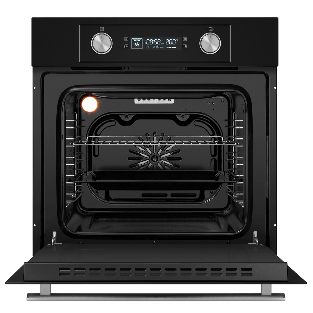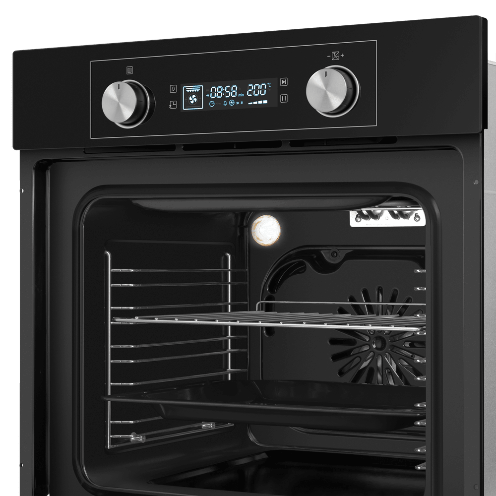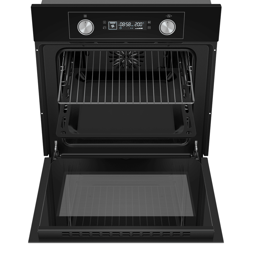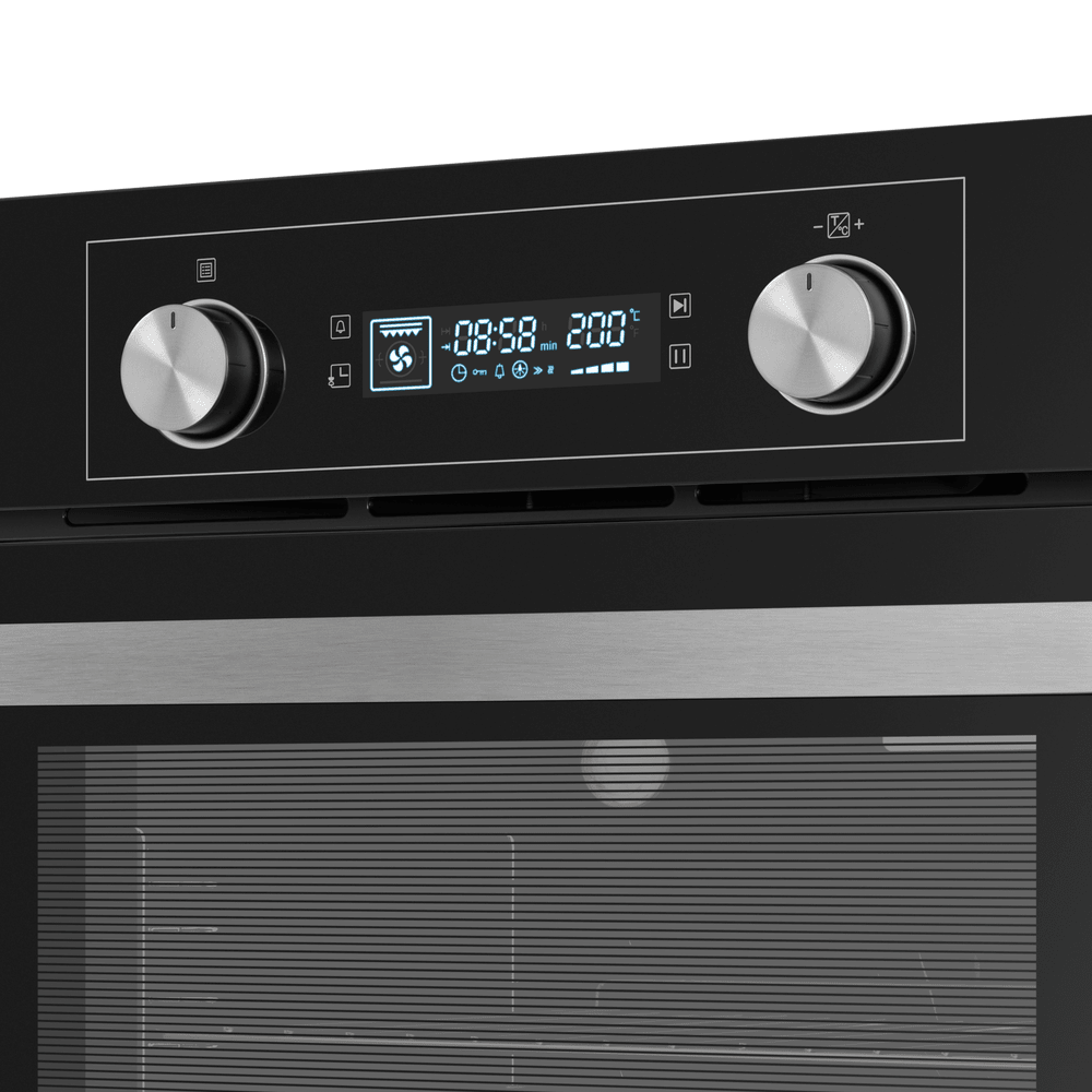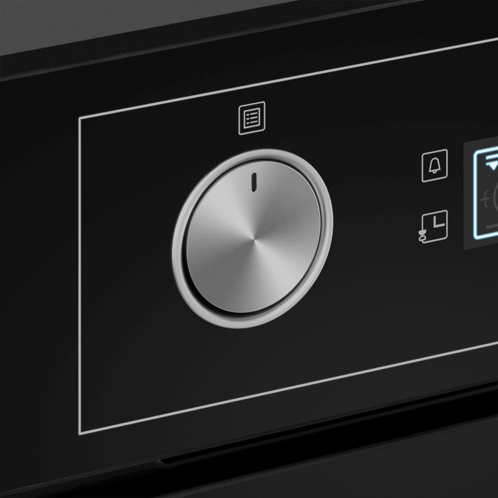 Черный корпус с отделкой из нержавеющей стали подчеркнет современный облик кухни и придаст ей солидности. Лаконичный фасад, большой дисплей, два утапливаемых поворотных переключателя, сенсорный дисплей, большая откидная дверца с трёхслойным остеклением — все эти детали свидетельствуют о техническом совершенстве и удобстве в использовании. Заглянуть внутрь поможет яркая подсветка.
