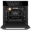 Черная духовка оформлена сдержано и лаконично: глянцевая лицевая панель, аккуратные темные ручки и фурнитура в одном тоне создают цельный образ. Откидная дверца с тремя стеклами выглядит компактно и обеспечивает холодную поверхность при работе, а внутренняя подсветка помогает контролировать процесс без лишних усилий. Внешний вид объединяет прямые грани и тонкую рамку, поэтому прибор становится частью современного интерьера.