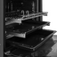 Способ открытия дверцы духовки — немаловажный фактор, который нередко влияет на выбор модели. В современных духовых шкафах используется несколько способов открывания дверцы и, соответственно, их крепления. Самый распространенный и привычный — откидной: петли дверцы располагаются в нижней части духовки, а открытие производится при помощи ручки, закрепленной в верхней части дверцы. Такой вариант используется как в электрических, так и в газовых духовках, встраиваемых и настольных. В ряде моделей ручка отсутствует, а для открывания дверцы достаточно нажать на ее верхнюю часть. Устройства высокой ценовой категории оснащаются также механизмом плавного открывания дверцы: в этом случае за ручку не нужно тянуть, а дверца распахивается самостоятельно. Откидные дверцы часто делают съемными, благодаря этому очистка их значительно упрощается.