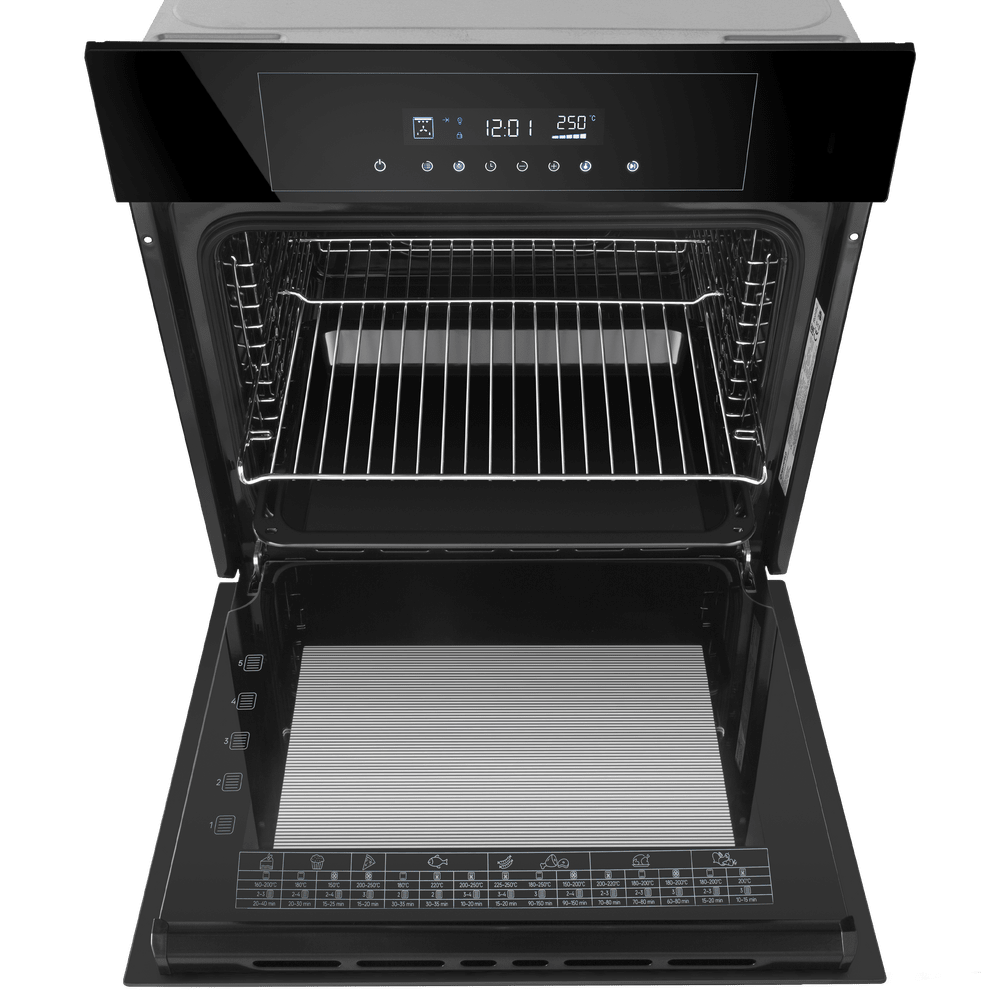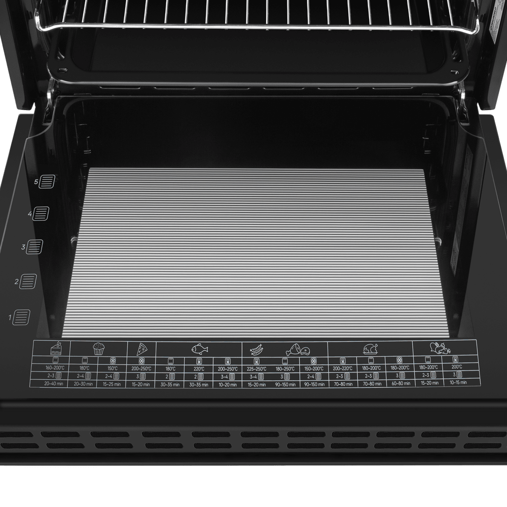 Модель независимая, поэтому ее можно встроить в колонну или под столешницу — электрическое подключение избавляет от привязки к газовым коммуникациям. Габариты корпуса 59 × 59.5 × 57 см рассчитаны на нишу 58 × 56 × 55 см: монтаж проходит без подгонки и со строгими зазорами. Для работы требуется подключение к стандартным электросетям с напряжением 220 В.