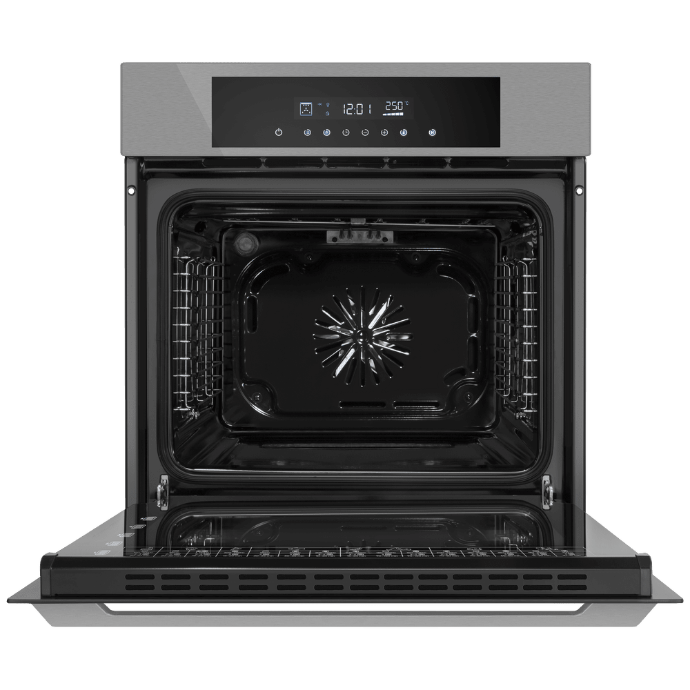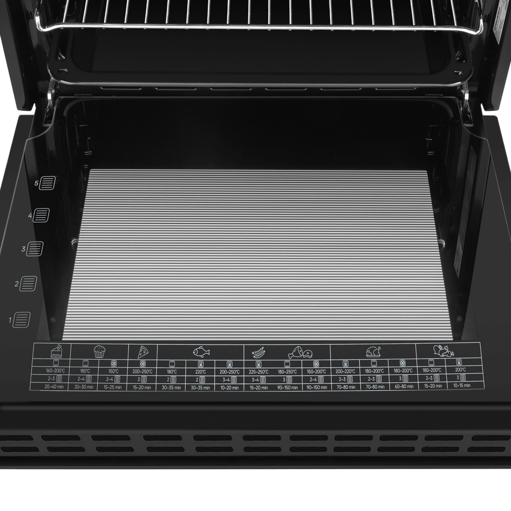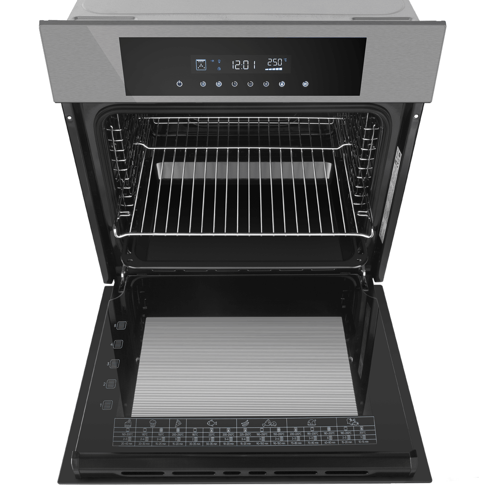 Управление полностью сенсорное: программатор помогает задать параметры, дисплей и таймер обеспечивают наглядность и точный контроль. Для спокойствия дома предусмотрена защита от детей, а по завершении цикла устройство отключается автоматически. Максимальная температура достигает 250 °C — этого достаточно для пиццы, багетов и запекания до румяности.