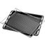 В стандартную комплектацию любого духового шкафа входят один или два противня — эмалированных или с антипригарным покрытием — и решетка. Единственный противень, как правило, имеет низкие бортики и предназначается для приготовления выпечки. Если духовка комплектуется двумя противнями, то второй отличается более высокими бортиками — его можно использовать для запекания мяса, птицы, овощных блюд. На решетке в духовке, не оснащенной грилем, обычно устанавливаются формы для запекания — стальные, керамические или стеклянные. В духовках премиум-класса количество противней может быть увеличено: к стандартному комплекту добавляются противни с перфорацией для мяса, специальные поддоны для сбора выделившегося сока.