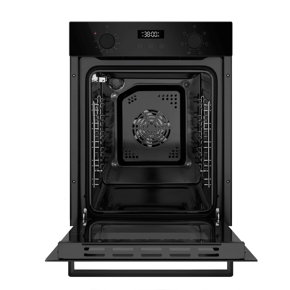 Особенности дизайна и внешней панели управления — также важный пункт при выборе духовки на кухню. В данной модели нужно обратить внимание на цвет — черный,