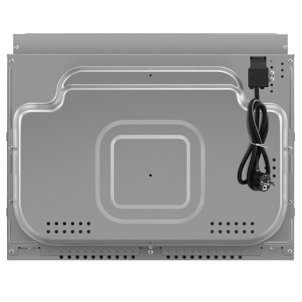 Внутренняя поверхность покрыта эмалью лёгкой очистки, которая минимизирует прилипание жира и упрощает удаление загрязнений. Паровая очистка размягчает пригоревшие остатки, поэтому достаточно тёплой воды и мягкой губки для поддержания чистоты. Освещение камеры помогает контролировать степень готовности блюд без необходимости открывать дверцу. В комплекте поставляются противень и решетка.