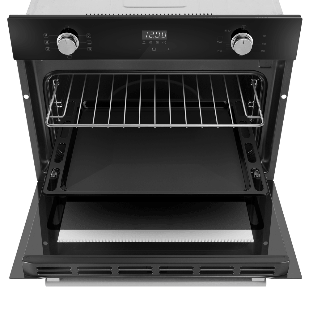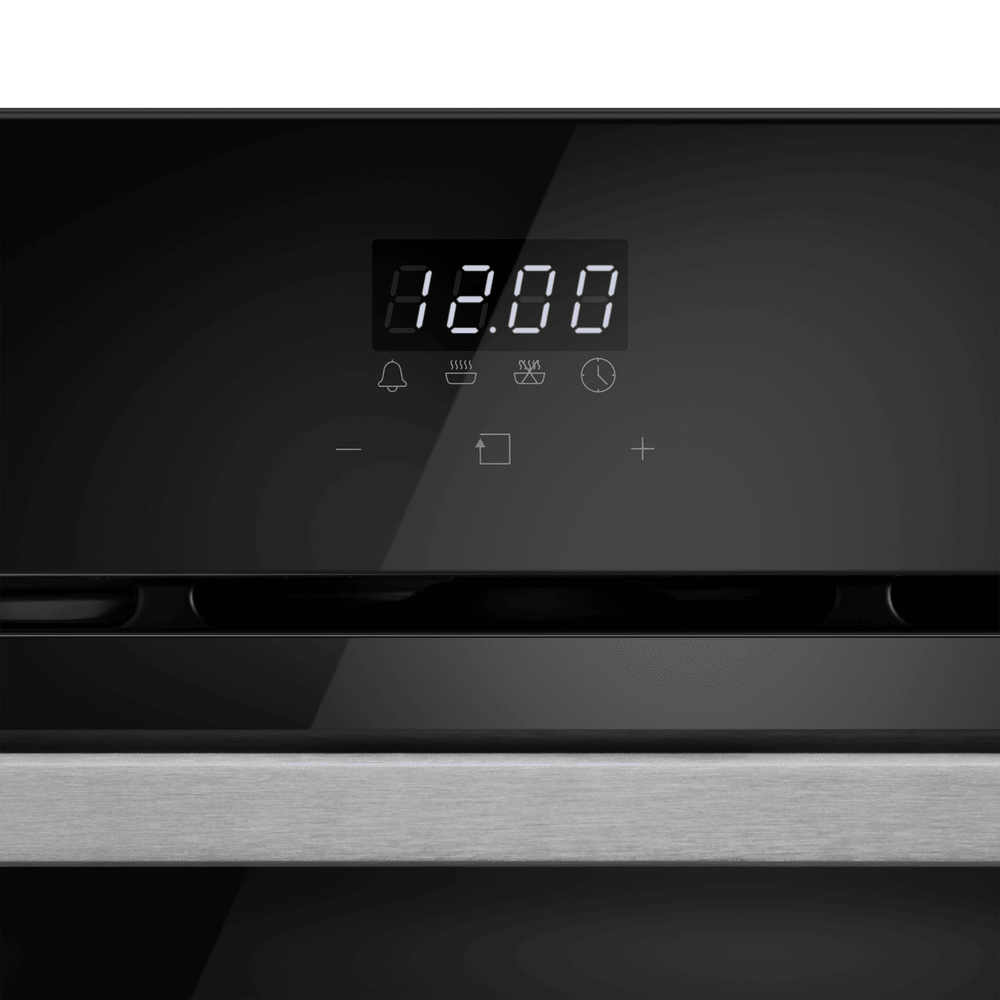Управление сочетает сенсорные элементы и утапливаемые поворотные регуляторы, что даёт удобство настроек. Встроенный дисплей, часы и таймер позволяют задать точное время и контролировать процесс. Функции безопасности включают блокировку управления от детей и автоматическое отключение по окончании программы, что снижает риск ошибок и повышает спокойствие при эксплуатации. Дверь с двумя стеклами и доводчиком уменьшает тепловые потери и риск ожогов при случайном прикосновении.