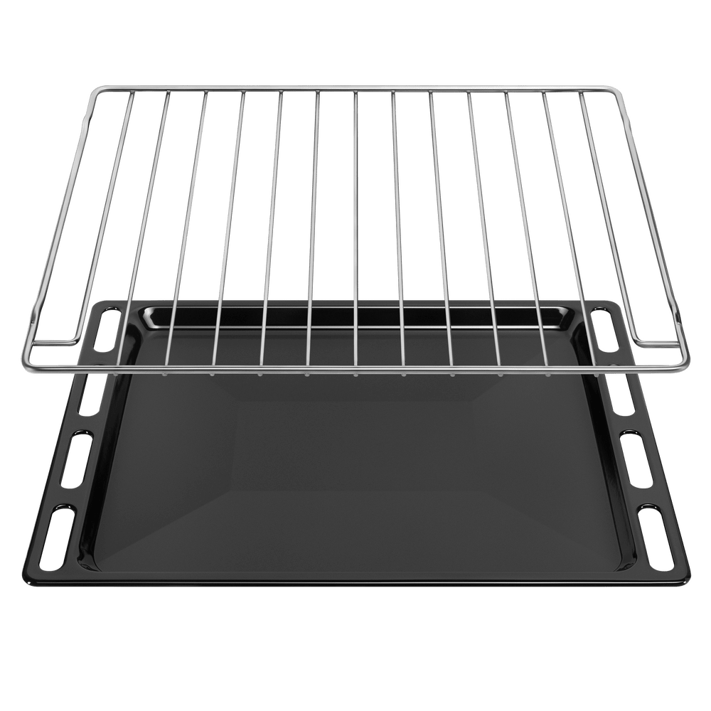 В стандартную комплектацию любого духового шкафа входят один или два противня — эмалированных или с антипригарным покрытием — и решетка. Единственный противень, как правило, имеет низкие бортики и предназначается для приготовления выпечки. Если духовка комплектуется двумя противнями, то второй отличается более высокими бортиками — его можно использовать для запекания мяса, птицы, овощных блюд. На решетке в духовке, не оснащенной грилем, обычно устанавливаются формы для запекания — стальные, керамические или стеклянные. В духовках премиум-класса количество противней может быть увеличено: к стандартному комплекту добавляются противни с перфорацией для мяса, специальные поддоны для сбора выделившегося сока.