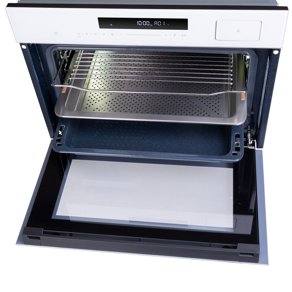 Технические возможности охватывают 13 рабочих режимов и 16 автоматических программ. В распоряжении пользователя верхний и нижний нагрев, интенсивное жарение, классическая конвекция. Предусмотрены режимы с добавлением пара, который улучшает структуру выпечки и сохраняет сочность продуктов. Гриль мощностью 2,2 кВт с режимом конвекции обеспечивает равномерную корочку на продуктах. ECO-режим и быстрый разогрев экономят энергию и время при повседневном использовании. Функция паровой самоочистки снижает время ухода за камерой.