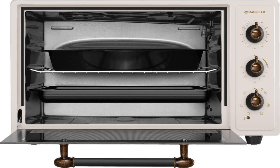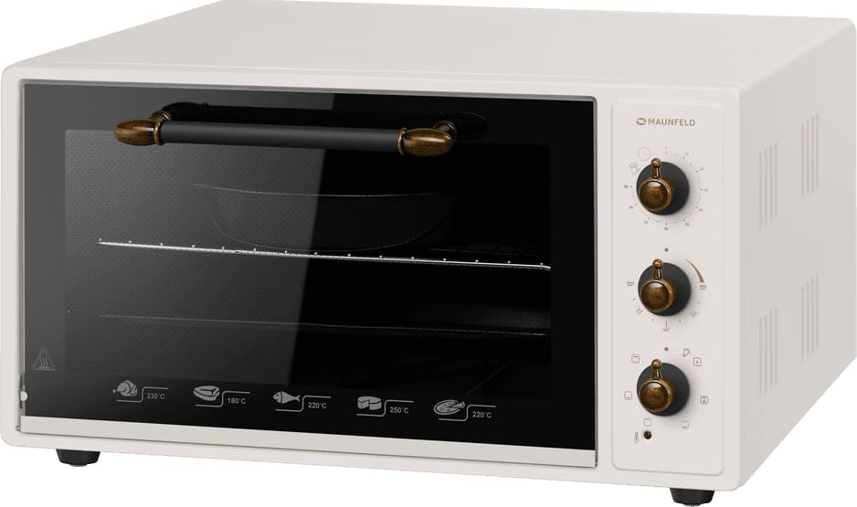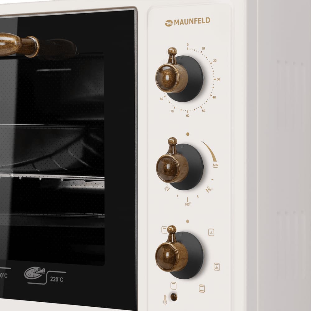 Духовой шкаф Maunfeld CEMOA 456 RIB сочетает в себе компактные габариты и продуманный набор функций для ежедневной готовки. Его высота всего 30 см при стандартной ширине 60 см и глубине 40 см делает прибор идеальным решением для небольших кухонь, квартир-студий и дачных кухонь. Небольшой внешний объем и аккуратный бежевый цвет с бронзовой фурнитурой придают корпусу стильный, немного ретро-акцент, который легко встраивается в классические и современные интерьеры.