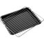 В стандартную комплектацию любого духового шкафа входят один или два противня — эмалированных или с антипригарным покрытием — и решетка. Единственный противень, как правило, имеет низкие бортики и предназначается для приготовления выпечки. Если духовка комплектуется двумя противнями, то второй отличается более высокими бортиками — его можно использовать для запекания мяса, птицы, овощных блюд. На решетке в духовке, не оснащенной грилем, обычно устанавливаются формы для запекания — стальные, керамические или стеклянные. В духовках премиум-класса количество противней может быть увеличено: к стандартному комплекту добавляются противни с перфорацией для мяса, специальные поддоны для сбора выделившегося сока.