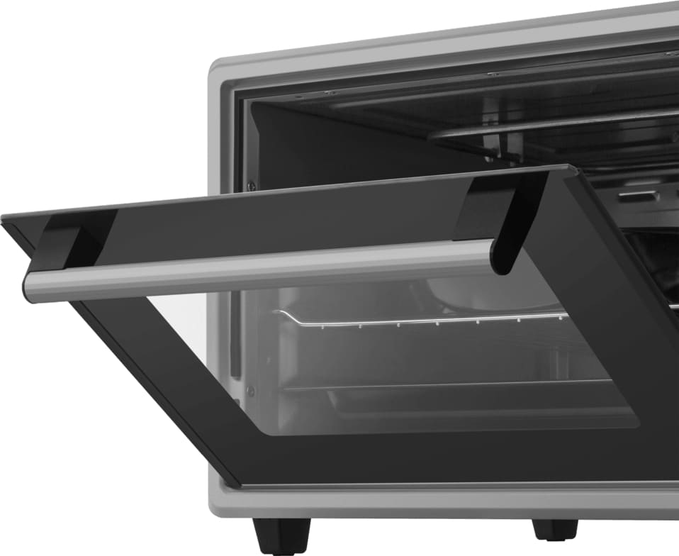 Максимальная температура в 280°C и возможность плавной регулировки от 50°C делают эту мини-модель универсальным инструментом для приготовления разнообразных блюд. Внутреннее сплошное стекло дверцы с легко очищаемой поверхностью упрощает уход за устройством, а традиционная система очистки позволяет поддерживать его в идеальном состоянии. Дверца с откидным механизмом и серой фурнитурой добавляет удобства в процессе эксплуатации.