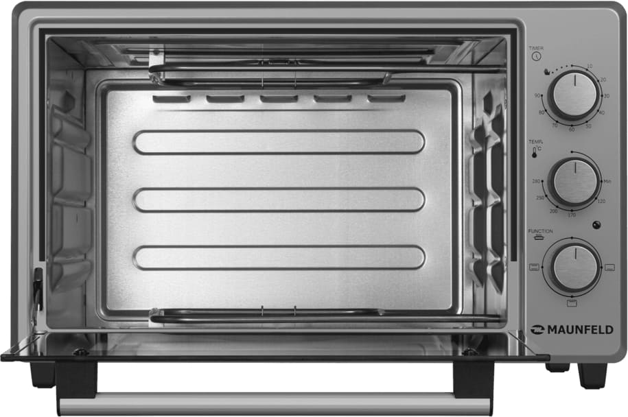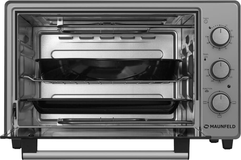 Эргономика устройства продумана до мелочей: три рельефные направляющие и комплектация двумя противнями и решеткой позволяют максимально эффективно использовать внутреннее пространство. Внутренняя камера из сплава алюминия и цинка обеспечивает долговечность и устойчивость к износу.