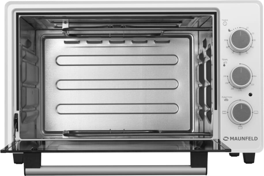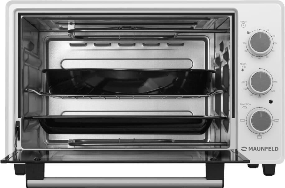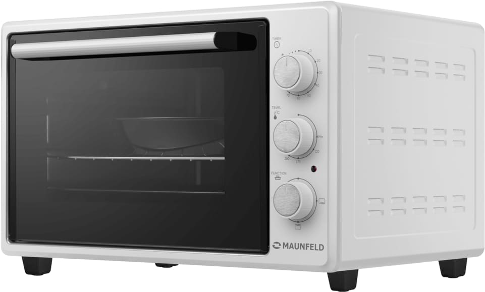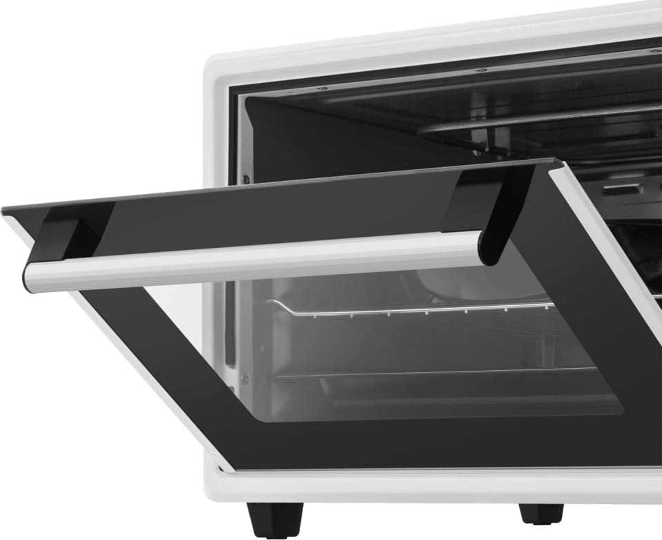 Компактная, надежная и простая в использовании электрическая мини-духовка выполнена в светлом, нейтральном оттенке, ей найдется место в кухне любого стиля. Лаконичный дизайн подчеркивается белой фурнитурой и удобными поворотными регуляторами с правой стороны. Устройство отдельно стоящее, малый вес 7.3 кг и небольшие размеры позволяют размещать его в на столешнице, на полке, убирать для хранения в тумбу, перевозить летом на дачу.