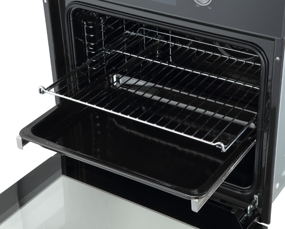 Уровни приготовления — это держатели для противней и решеток, расположенные по бокам камеры. В стандартном шкафу их обычно 4-5, в некоторых моделях доходит до 7 и больше. Для многих блюд имеет значение, на каком уровне их готовить, так как распределение жара происходит по-разному сверху, снизу или посередине. Для выдвижения и переставления противней на этих уровнях есть разного вида направляющие.