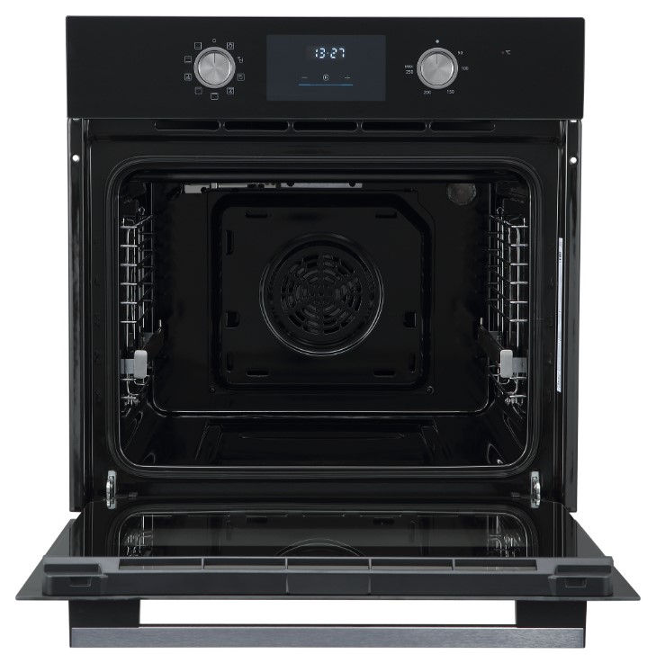 Особенности дизайна и внешней панели управления — также важный пункт при выборе духовки на кухню. В данной модели нужно обратить внимание на цвет — черный,