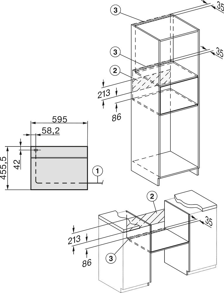 При установке духового шкафа в тумбу необходим также зазор между прибором и полом не менее 8–10 см. Если же она устанавливается в колонну, следует убедиться, что при открывании дверцы в лицо не будет ударять горячий воздух, а панель управления легко доступна. Кроме того, необходимо обеспечить свободный доступ ко всем розеткам и кабелям — они не должны размещаться непосредственно за задней стенкой духового шкафа.