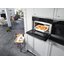 При использовании любых нагревательных элементов, в том числе и гриля, стенки рабочей камеры неизбежно пачкаются — на них остаются капли жира, крошки и другие загрязнения, которые под действием высокой температуры пристают к поверхности. Если верхний и нижний нагревательные элементы скрыты, то гриль находится снаружи и закрывает потолок камеры, делая очистку достаточно неудобной. Откидная конструкция решает эту проблему: при этом можно легко отмыть не только стальную поверхность камеры, но и сам нагревательный элемент со всех сторон. Для этого нужно только потянуть решетку гриля вниз — она выйдет из крепления и опустится на угол примерно 45 градусов.