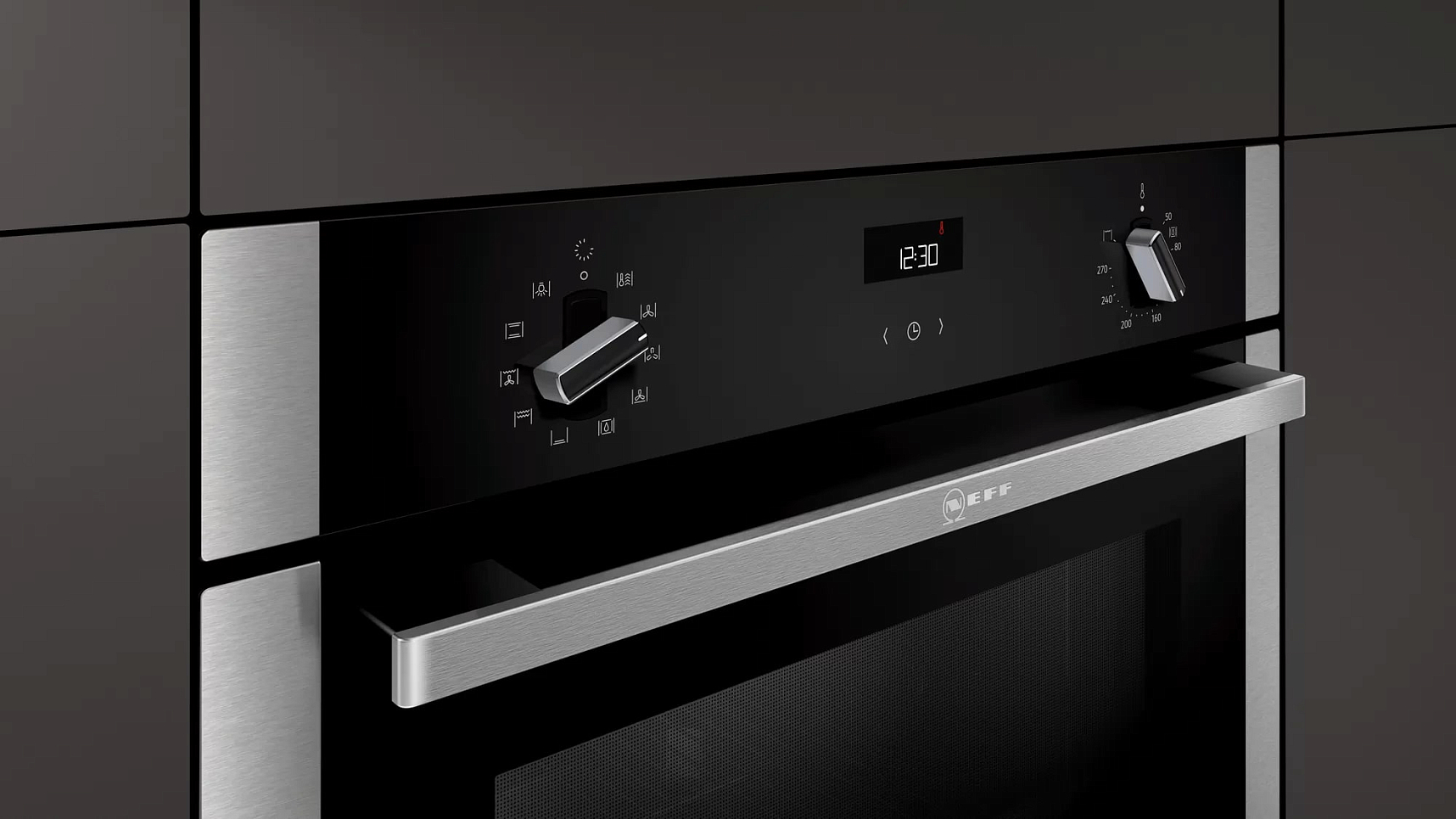 Известная немецкая компания NEFF выпустила духовые шкафы с уникальной дверцей HIDE® и удобной вращающейся ручкой SLIDE®: эта дверца полностью убирается в специальное отделение под днищем духовки при помощи специального механизма. Таким образом доступ к содержимому духового шкафа становится более удобным, а дверца не мешает обзору или каким-либо действиям в процессе приготовления.