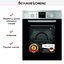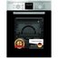 Панель из нержавеющей стали защищена от отпечатков пальцев. Она располагается в верхней части фасада и включает два утапливаемых поворотных регулятора, позволяющие задавать время и режим приготовления, цифровой дисплей и таймер с автоматическим отключением в конце приготовления. В комплект входят хромированная решетка и два противня с антипригарным покрытием — универсальный и глубокий. Дверца духовки имеет двойное остекление, предохраняющее от ожогов, и также обработана от отпечатков пальцев. Особая конструкция петель позволяет открывать и закрывать ее плавно и бесшумно, так что выпечка в камере не опадает. Об экономичной работе устройства свидетельствует высокий класс энергоэффективности А.