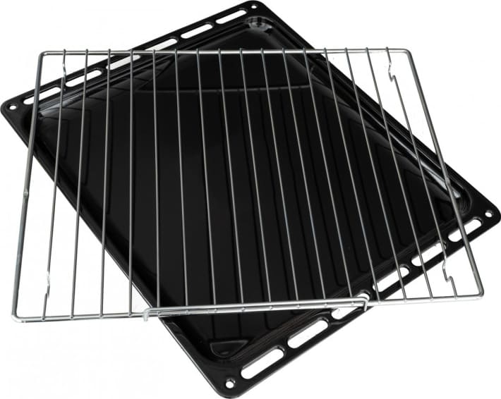 В стандартную комплектацию любого духового шкафа входят один или два противня — эмалированных или с антипригарным покрытием — и решетка. Единственный противень, как правило, имеет низкие бортики и предназначается для приготовления выпечки. Если духовка комплектуется двумя противнями, то второй отличается более высокими бортиками — его можно использовать для запекания мяса, птицы, овощных блюд. На решетке в духовке, не оснащенной грилем, обычно устанавливаются формы для запекания — стальные, керамические или стеклянные. В духовках премиум-класса количество противней может быть увеличено: к стандартному комплекту добавляются противни с перфорацией для мяса, специальные поддоны для сбора выделившегося сока.