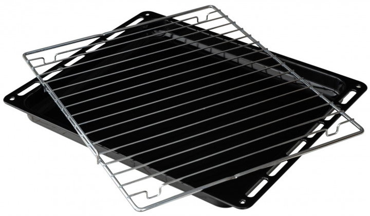 В стандартную комплектацию любого духового шкафа входят один или два противня — эмалированных или с антипригарным покрытием — и решетка. Единственный противень, как правило, имеет низкие бортики и предназначается для приготовления выпечки. Если духовка комплектуется двумя противнями, то второй отличается более высокими бортиками — его можно использовать для запекания мяса, птицы, овощных блюд. На решетке в духовке, не оснащенной грилем, обычно устанавливаются формы для запекания — стальные, керамические или стеклянные. В духовках премиум-класса количество противней может быть увеличено: к стандартному комплекту добавляются противни с перфорацией для мяса, специальные поддоны для сбора выделившегося сока.