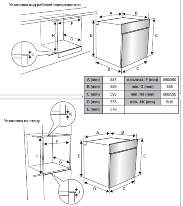 Ко всем моделям прилагаются подробные инструкции по установке, где указаны точные размеры ниши для каждой конкретной духовки.
