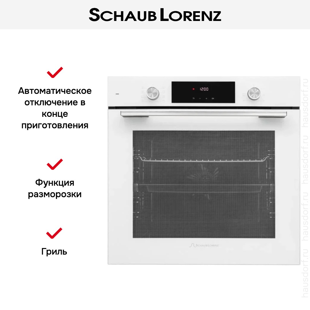 Количество режимов работы в духовом шкафу Шауб Лоренц: 8. В число доступных программ входят: классический нагрев, нижний нагрев, конвекция, гриль для создания хрустящей корочки, и другие. Помимо основных программ воспользуйтесь специальными возможностями этого прибора: размораживанием продуктов, чтобы сократить время на подготовку; вентилятором, совмещенным с грилем; и другими. Тип гриля в этой модели — электрический.