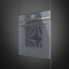 Многофункциональный духовой шкаф Smeg с функцией пароувлажнения. Модель с фасадом из серебристого стекла Stopsol оснащена цветным