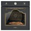 Модель в классическом стиле из коллекции Cortina отличает оригинальный оттенок антрацита, стекло необычной формы в дверце и стильная латунная фурнитура. Духовка предназначается для встраивания в колонну. В верхней части располагается удобная и понятная панель управления с поворотными регуляторами, которые служат для выбора режима работы и температуры нагрева. В центре находятся аналоговые часы-таймер. При помощи верхнего и нижнего жара, конвекции, гриля можно выпекать, тушить, размораживать, разогревать готовые блюда, а также готовить пиццу на специальном огнеупорном камне, который входит в комплект. Для очистки от остатков пищи в камере предусмотрена пиролитическая очистка при высоких температурах и покрытие стенок эмалью EverClean, не впитывающей жир. Стекло в дверце можно снять для более тщательной очистки. Для визуального контроля приготовления служат две яркие галогенные лампы. Готовые блюда легко извлекаются из духовки при помощи телескопических направляющих. В комплект входят также вертел, две решетки, два противня и специальная лопатка. Модель относится к классу энергоэффективности А и потребляет небольшое количество электроэнергии.