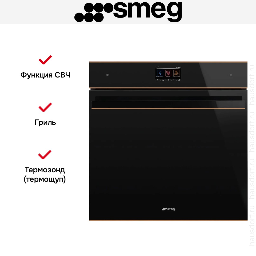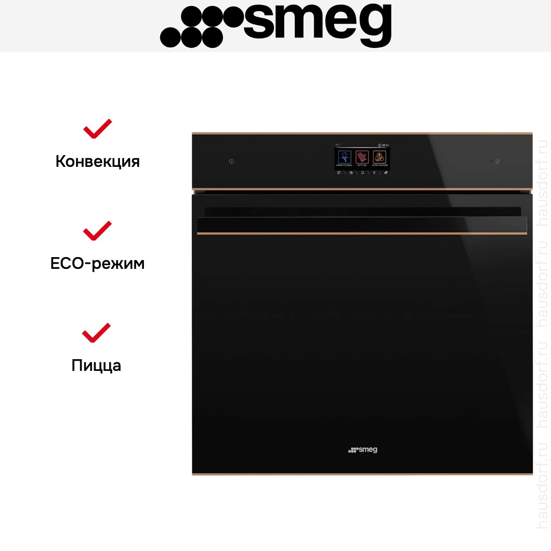 Готовьте свои лучшие блюда и пробуйте новые рецепты с духовым шкафом Smeg SO6604M2PNR! Стандартные размеры и большой объем внутренней камеры — выбор тех, кто много готовит для семьи или частых праздничных встреч с друзьями. Желательно заранее продумать расположение такой модели в кухонном гарнитуре.