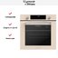 Особенности дизайна и внешней панели управления — также важный пункт при выборе духовки на кухню. В данной модели нужно обратить внимание на цвет — бежевый, охлаждение двери, чтобы поверхность и мебель вокруг не нагревались.