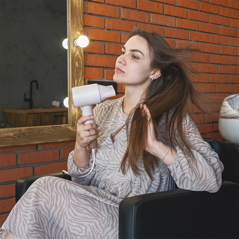 Нежно-розовый фен Meyvel — стильное решение для дома, гостиниц и отелей. Мощность 1600 Вт, два температурных режима (55 °C и 85 °C), функция холодного обдува и ионизация обеспечивают бережную и эффективную сушку всех типов волос. Устройство оснащено микротермическим датчиком защиты от перегрева, съемной магнитной насадкой и фильтром из нержавеющей стали. Уровень шума — менее 60 дБ.