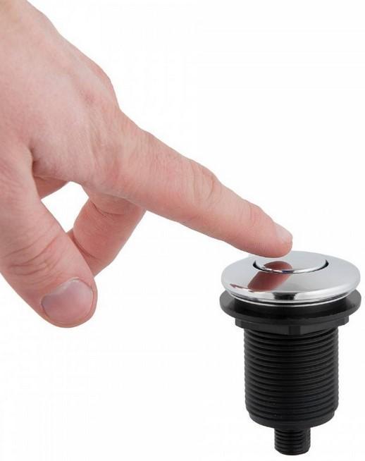 Пневматическая кнопка для измельчителя пищевых отходов позволяет включать прибор посредством давления воздуха, исключая возможность поражения электрическим током при попадании воды. Изготавливается из нержавеющей стали и пластика и располагается на бортике раковины или на столешнице.