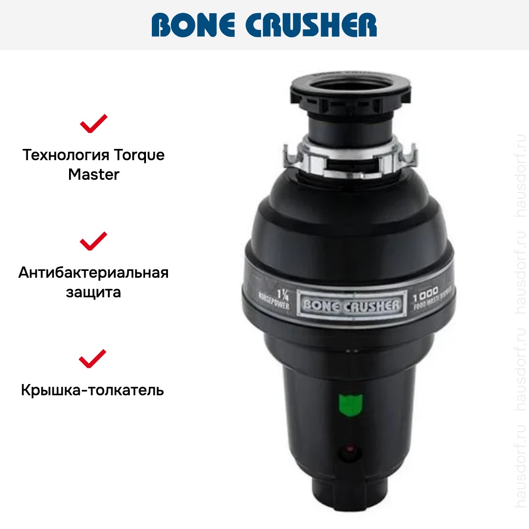 Bone Crusher BC 1000 не только упрощает утилизацию пищевых остатков, но и способствует поддержанию гигиены на кухне, предотвращая скопление мусора и появление неприятных запахов. Он совместим с большинством канализационных систем и не требует регулярного технического обслуживания. Это идеальный выбор для тех, кто ищет долговечное, производительное и при этом компактное решение для ежедневной переработки отходов.