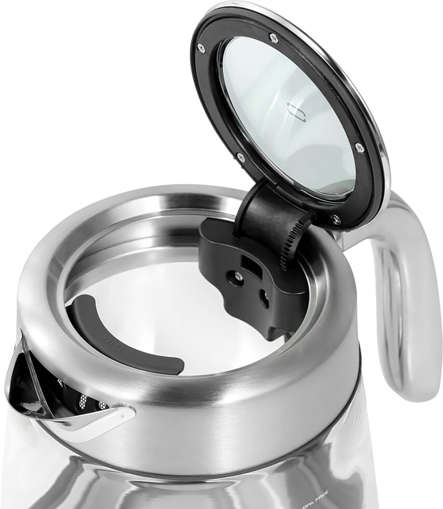 Классическая модель в новом дизайне изготовлена из прочного стекла, отличающегося экологичностью в использовании. Материал не выделяет вредных веществ при нагревании и не искажает вкус воды.