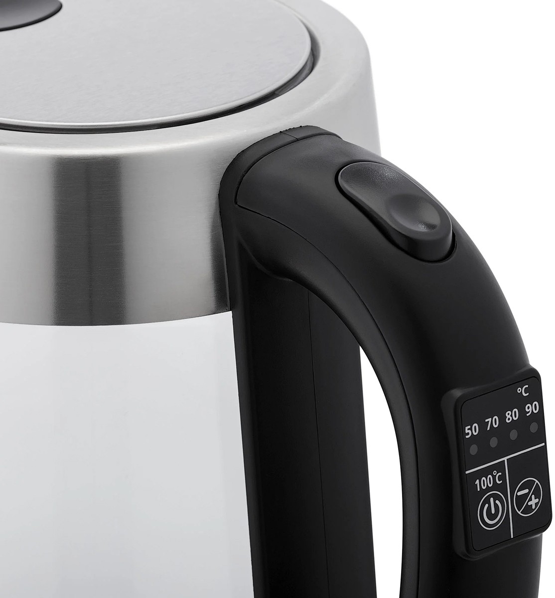 Чайник KRONA Digitaler Glas Licht КА-00008506 — изысканное сочетание передовых технологий, эстетики и функциональности, созданное для тех, кто ценит визуальную гармонию и точность в приготовлении напитков. Эта модель выделяется стильной стеклянной колбой, которая не только подчёркивает современный дизайн, но и позволяет наблюдать за процессом нагрева воды, добавляя элемент уюта и контроля. Вместимость устройства составляет 1,7 литра — оптимальный объём для повседневного использования как в домашних условиях, так и в офисе. Мощность в 2200 Вт обеспечивает быстрый нагрев до заданной температуры, экономя время без ущерба для качества. В основе конструкции — закрытый нагревательный элемент, расположенный в основании, что гарантирует равномерное распределение тепла, снижает риск образования накипи и упрощает уход за внутренней поверхностью. Колба выполнена из термостойкого стекла, устойчивого к перепадам температур и не влияющего на вкус воды, а чёрное оформление придаёт прибору лаконичную элегантность, гармонично вписываясь в интерьеры от минимализма до индустриального стиля. Особенностью модели является встроенная подсветка, которая мягко освещает колбу в процессе работы, создавая атмосферу уюта и одновременно сигнализируя о включённом состоянии. Цифровая панель с интуитивным управлением позволяет точно выбрать желаемую температуру — от 40 C для деликатных сортов чая до 100 C для классического кипячения. Функция поддержания тепла и автоматическое отключение по достижении нужного режима повышают комфорт и безопасность эксплуатации. Эргономичная ручка из термостойкого материала обеспечивает надёжный хват, а широкое горлышко облегчает наполнение и очистку. Прибор оснащён защитой от сухого включения, предотвращающей перегрев и продлевающей срок службы. Несмотря на наличие электроники, устройство работает тихо, не нарушая утреннюю тишину. Прозрачная колба в сочетании с чёрными акцентами создаёт визуальный контраст, подчёркивающий современный характер техники. Этот электрочайник станет идеальным выбором для гурманов, ценящих не только вкус, но и эстетику процесса заваривания. Сочетание инноваций, практичности и утончённого дизайна делает данную модель достойным приобретением для современного дома.