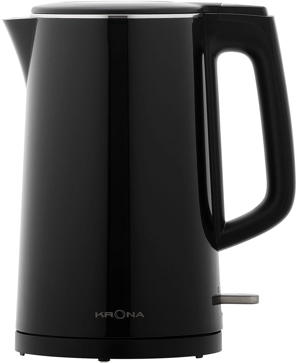 Чайник KRONA Elegant Black КА-00008502 — современное и стильное решение для быстрого приготовления горячих напитков, сочетающее в себе элегантный чёрный дизайн, высокую функциональность и продуманную конструкцию. Этот электрочайник обладает вместимостью 1,7 литра, что делает его универсальным как для индивидуального пользования, так и для обслуживания небольшой компании. Мощность в 2200 Вт обеспечивает стремительный нагрев воды до кипения — всего за несколько минут вы получите горячую основу для чая, кофе, какао или быстрых блюд. В основе устройства — закрытый нагревательный элемент, расположенный в дне колбы, что гарантирует равномерное распределение тепла, снижает образование накипи и упрощает уход за внутренней поверхностью. Колба выполнена из высококачественной нержавеющей стали, устойчивой к коррозии и не влияющей на вкус воды, в то время как корпус изготовлен из прочного термостойкого пластика чёрного цвета, что придаёт прибору лаконичный и современный облик. Такое сочетание материалов обеспечивает лёгкость конструкции, сохраняя при этом прочность и долговечность. Эргономичная ручка продумана для комфортного и безопасного хвата даже при полной загрузке, а крышка с удобным механизмом открывания облегчает наполнение и очистку. Прибор оснащён автоматической системой отключения при закипании и защитой от включения без воды, что повышает безопасность эксплуатации в любых условиях. Несмотря на отсутствие цифровых настроек, модель отличается высокой практичностью: она работает тихо, не нарушая утреннюю тишину, и гармонично вписывается в интерьеры от минимализма до индустриального стиля. Гладкая поверхность корпуса легко очищается, а устойчивое основание предотвращает случайное опрокидывание. Этот электрочайник станет незаменимым помощником в повседневной жизни, экономя время и обеспечивая стабильный результат без лишних усилий. Он подойдёт как для дома, так и для офиса, где важны скорость, надёжность и эстетика. Сочетание продуманной инженерии, качественных компонентов и сдержанного дизайна делает данную модель разумным выбором для тех, кто ценит комфорт, функциональность и стиль в быту.