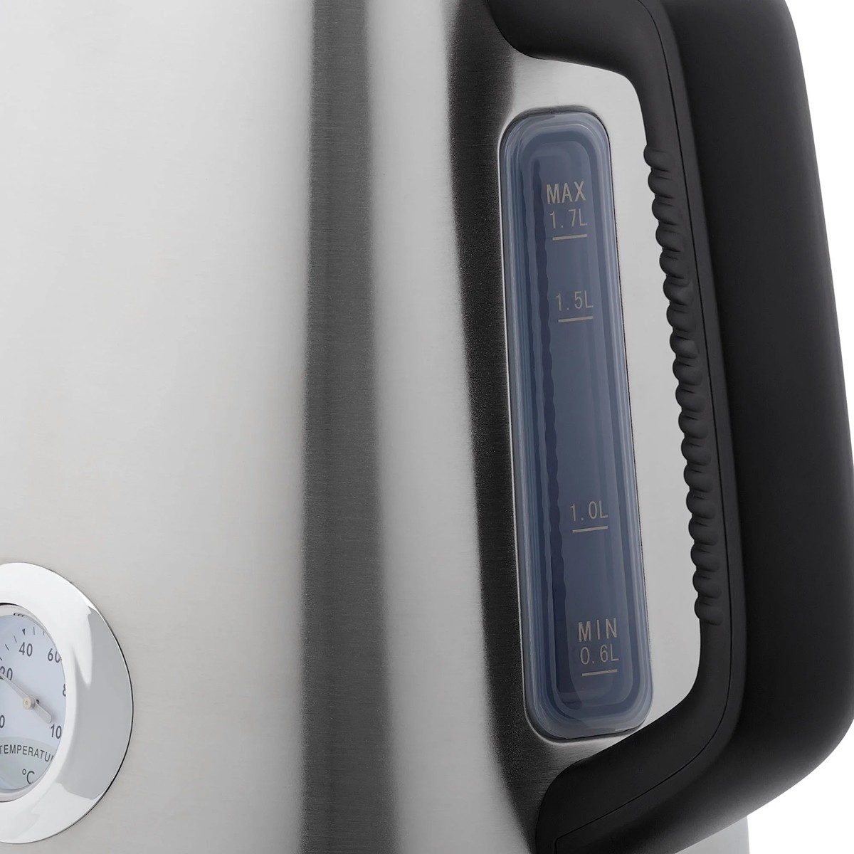 Чайник KRONA Stahl Inox КА-00008503 — надёжный и элегантный электроприбор, сочетающий в себе высокую производительность, долговечность и классический дизайн из полированной нержавеющей стали. Эта модель разработана для тех, кто ценит простоту, скорость и безупречное качество в повседневных кухонных ритуалах. Вместимость колбы составляет 1,7 литра, что делает устройство универсальным решением как для утреннего чая в одиночестве, так и для приёма гостей. Мощность в 2200 Вт обеспечивает стремительный нагрев воды до кипения — всего за пару минут вы получите горячую основу для любимых напитков или быстрых блюд. В основе конструкции — закрытый нагревательный элемент, спрятанный в дно колбы, что способствует равномерному распределению тепла, минимизирует образование накипи и значительно упрощает очистку внутренней поверхности. И корпус, и колба выполнены из высококачественной нержавеющей стали, отличающейся прочностью, устойчивостью к коррозии и отсутствием посторонних запахов или привкусов, что гарантирует чистоту вкуса каждого приготовленного напитка. Блестящая поверхность не только придаёт технике благородный внешний вид, но и легко поддерживается в чистоте — достаточно протереть её мягкой тканью. Эргономичная ручка из термостойкого материала обеспечивает надёжный и комфортный хват даже при полной загрузке, а крышка с плавным механизмом открывания облегчает наполнение и уход. Прибор оснащён автоматической системой отключения при закипании и защитой от включения без воды, что повышает безопасность эксплуатации в любых условиях. Несмотря на отсутствие сложной электроники, модель демонстрирует высокую функциональность: она работает тихо, не отвлекая в ранние часы, и гармонично вписывается в любой интерьер — от ультрасовременного до традиционного. Прочный корпус устойчив к механическим повреждениям и сохраняет первоначальный блеск на протяжении многих лет. Этот электрочайник станет незаменимым помощником в приготовлении чая, кофе, какао, горячих супов или каш, экономя время и обеспечивая стабильный результат. Он подойдёт как для дома, так и для офиса, где важны надёжность, скорость и эстетика. Сочетание проверенных технологий, качественных материалов и лаконичного дизайна делает данную модель разумным выбором для тех, кто стремится к практичности и утончённости в быту.
