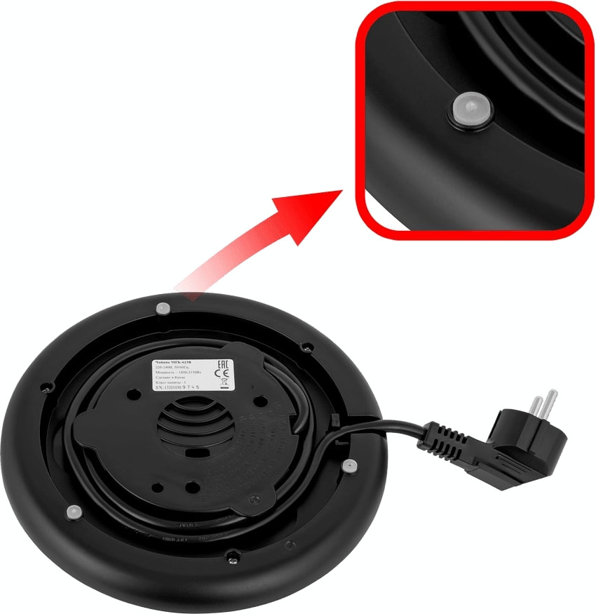 Вы можете установить чайник на такую базу в любом положении. Благодаря этому не нужно выбирать угол, под которым вы повернете носик чайника к себе или от себя, так как он всегда будет работать.