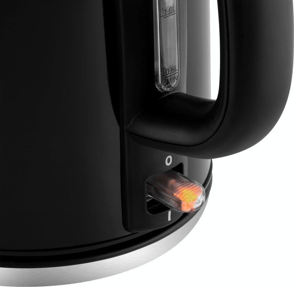 Объём 1,7 литра позволяет вскипятить воду для большой семьи или небольшой компании, а мощность 2200 Вт сокращает время ожидания. Закрытый нагревательный элемент защищён от накипи и облегчает уход, так как поверхность нагрева не контактирует напрямую с жесткой водой. Наличие шкалы уровня воды делает дозирование прозрачным, а откидная защёлкивающаяся крышка упрощает налив и очистку.
