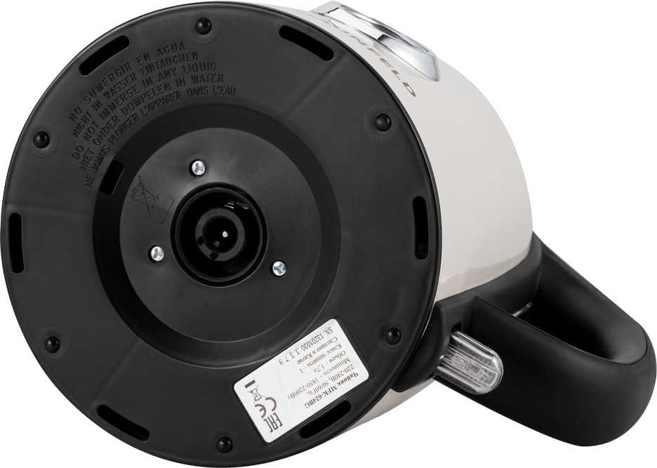 Практичные детали повышают комфорт в быту: съёмный нейлоновый фильтр эффективно задерживает накипь и легко промывается, шкала уровня воды позволяет быстро определить объём, а отсек для шнура упрощает хранение. Подставка с поворотом на 360° обеспечивает удобство при снятии и установке, а нескользящие ножки придают устойчивость. Автоматическое отключение при закипании, при перегреве и при снятии с базы, а также блокировка включения без воды делают использование безопасным.