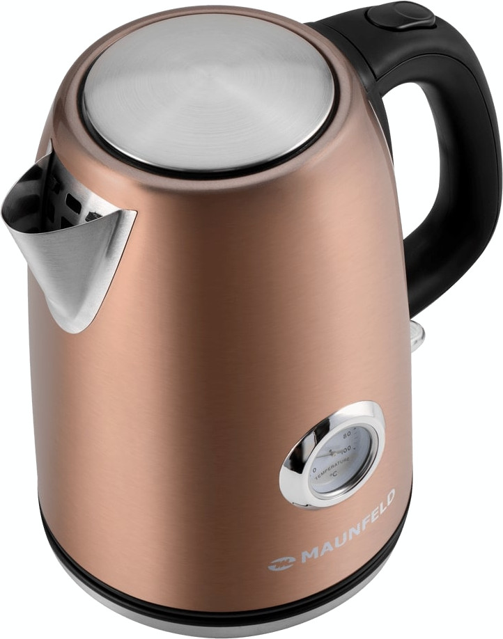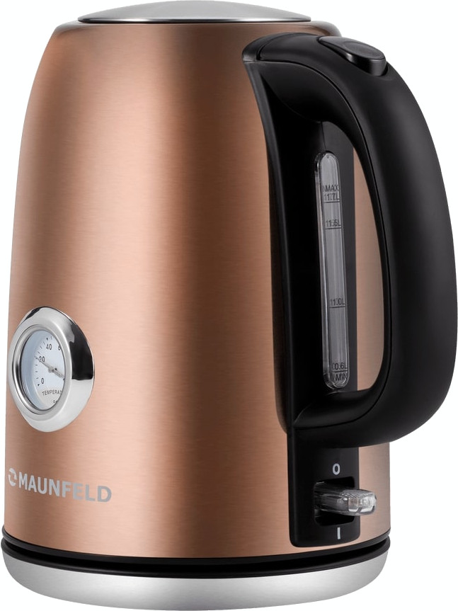 Электрочайник Maunfeld MFK-624BZ — стильный прибор в бронзовом исполнении, который сочетается с современным интерьером и экономит пространство на кухне. Его внешний корпус из металла с пластиковыми вставками придает надежность и аккуратный вид, а компактные габариты и масса около 1 кг делают его удобным в хранении и переноске.