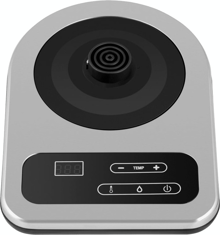 Управление полностью электронное с сенсорными клавишами на базе и информативным дисплеем. На экране одновременно показываются статус питания и текущая температура, а подсветка подсвечивает режим работы. Кнопка включения расположена на подставке, а база поворачивается на 360 градусов для удобства установки с любой стороны. Отсек для шнура и нескользящие ножки поддерживают аккуратность на столе.