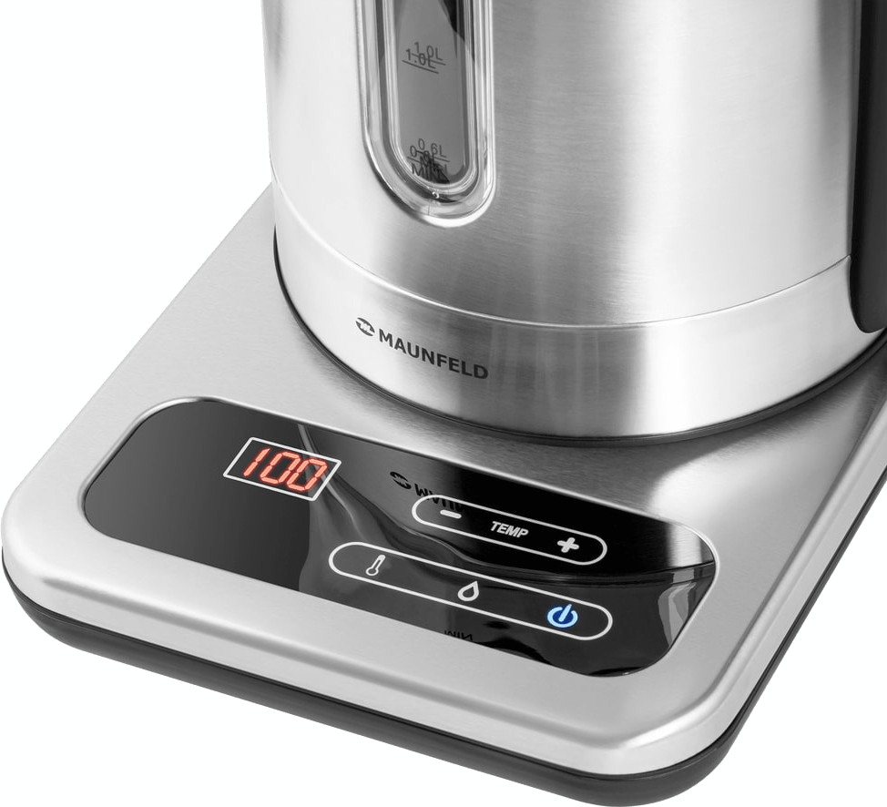 Материал корпуса: металл. Материал подставки: пластик. Объем (л): 1.7. Цвет: нержавеющая сталь. Мощность (Вт): 2200. Управление: электронное.